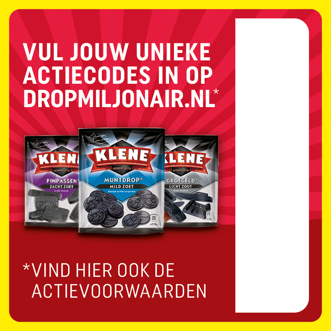 Klene dropmiljonair actie Keyvisual en opmaak label Bureau: FEL