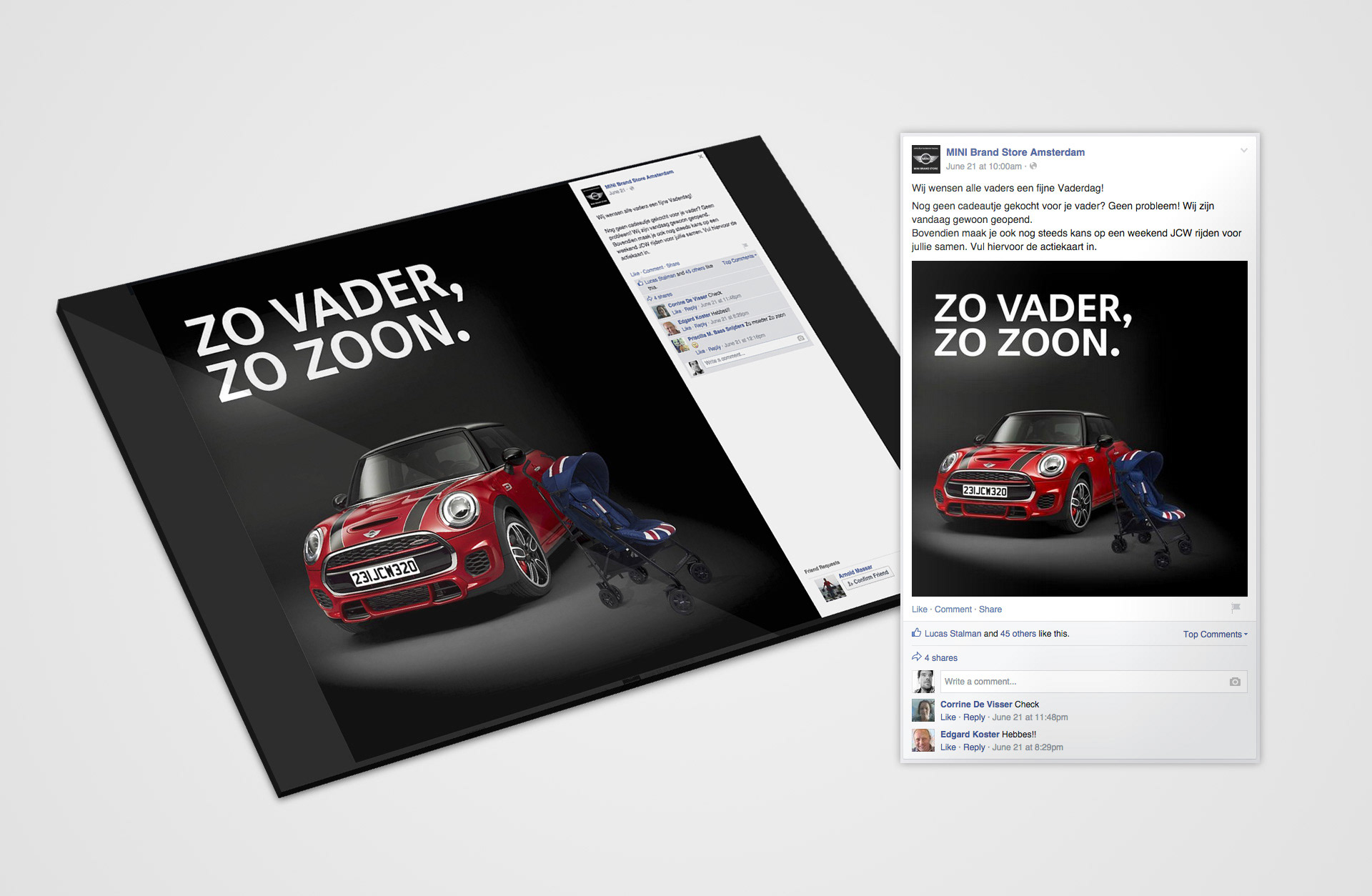Facebookpost voor vaderdag voor de MINI Brandstore in Amsterdam.