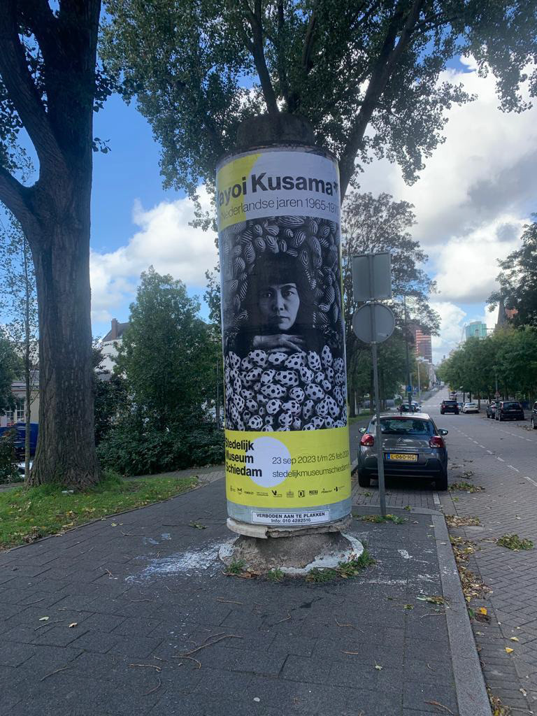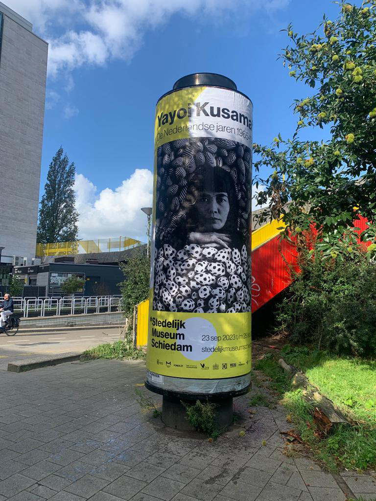 Stedelijk Museum Schiedam | Yayoi Kusama Voor de tentoonstelling ‘Yayoi Kusama. De Nederlandse jaren 1965-1970' heb ik het artwork gemaakt. In deze tentoonstelling zie je het onbekende en zeer kwetsbare werk uit de vroege jaren van de wereldberoemde Kusama. Met 40.000 bezoekers is de Kusama-tentoonstelling officieel de best bezochte tentoonstelling in de hele geschiedenis van het museum.