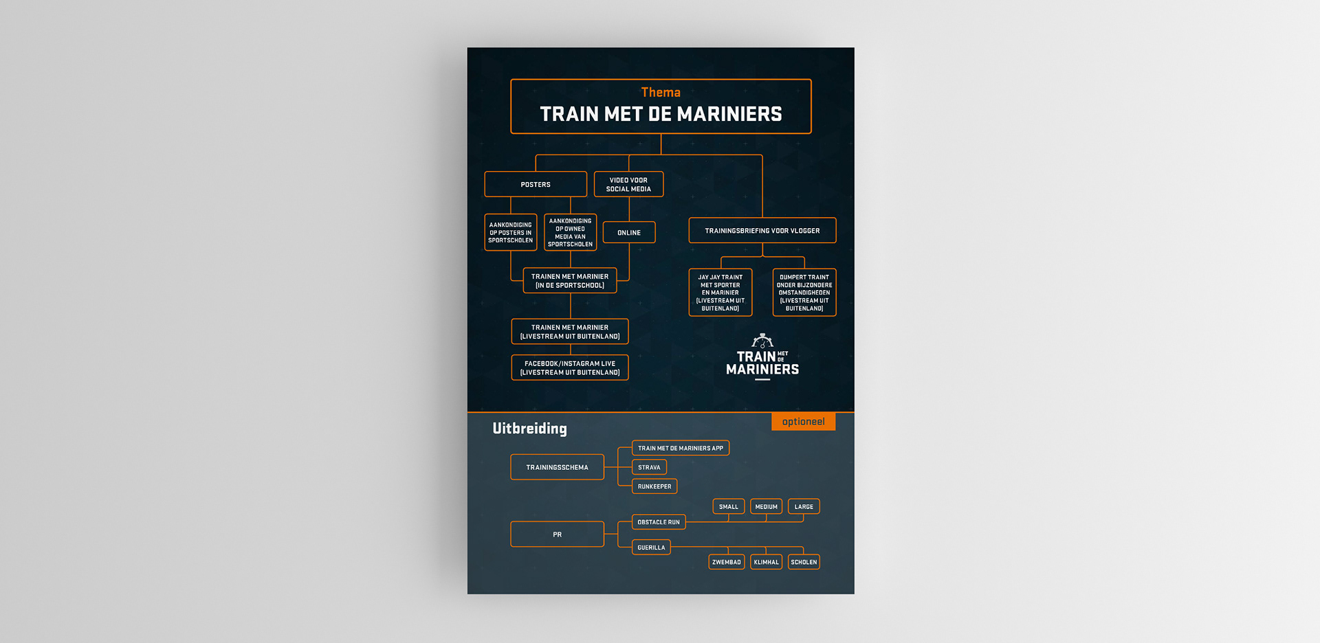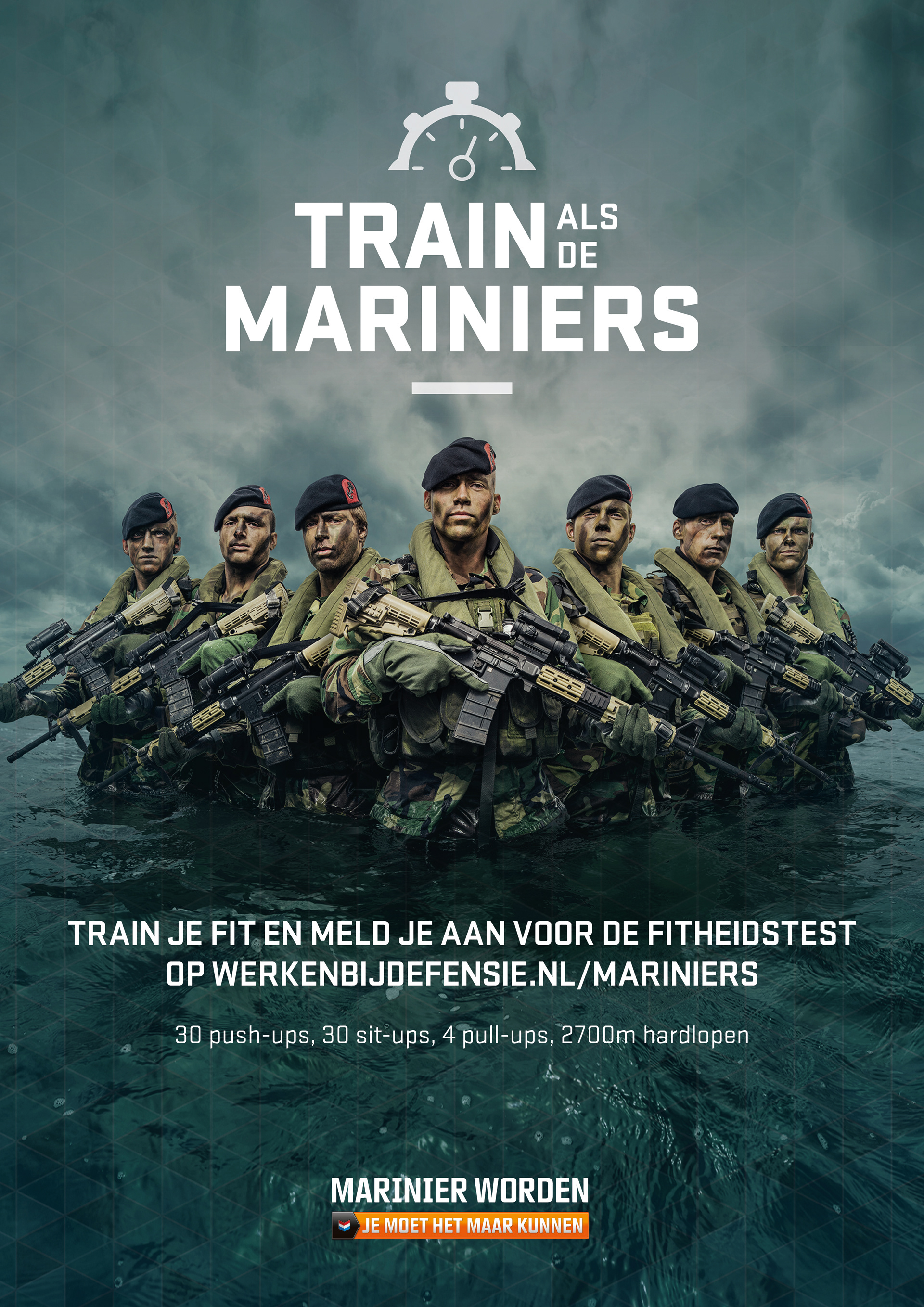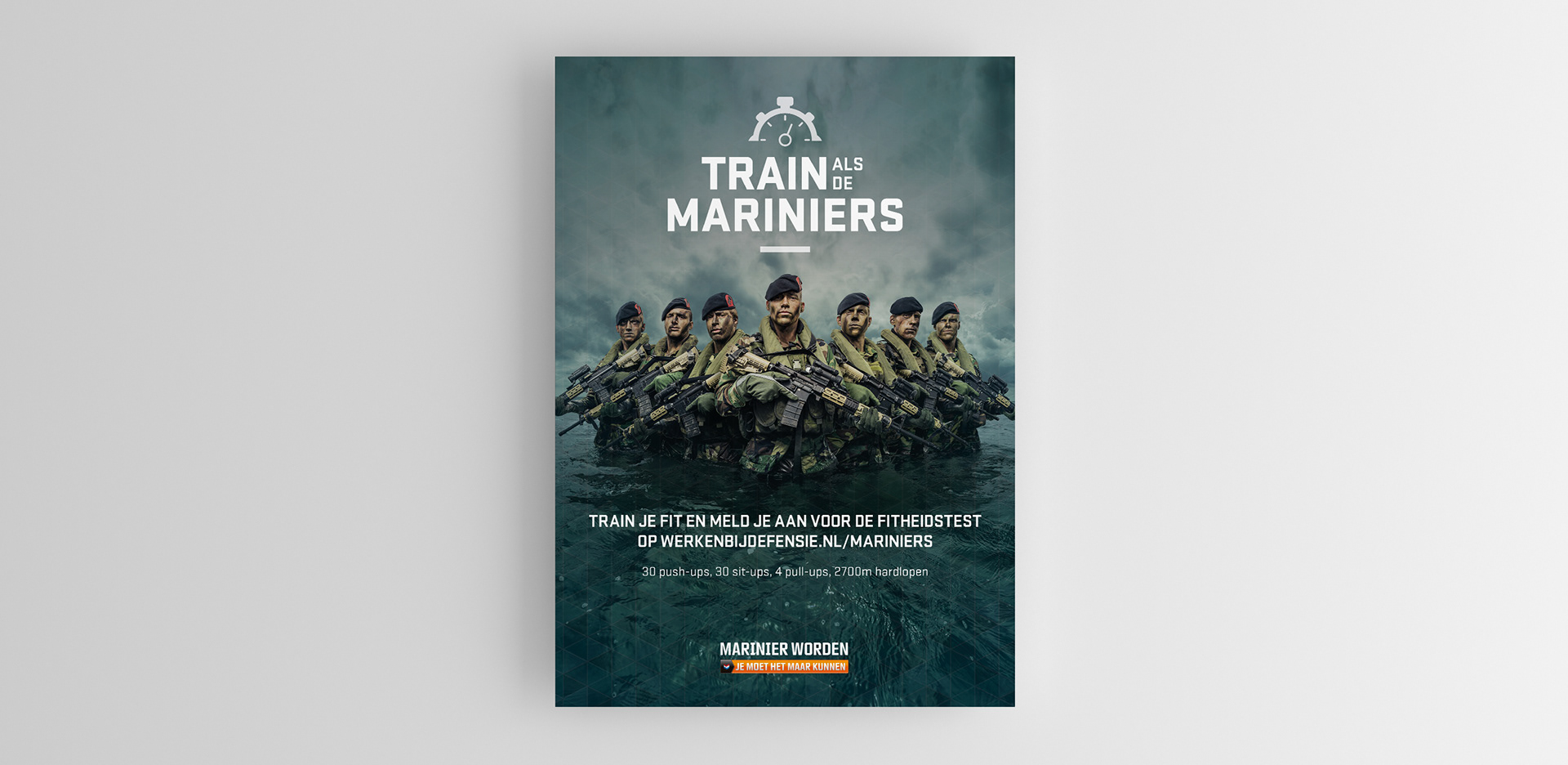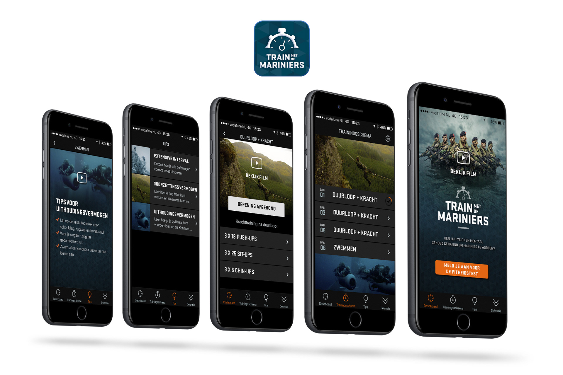 Train als de Mariniers Deel van de presentatie 'Train als de Mariniers'. Ontwerp logo, poster, app-icon, app-voorstel. Bureau: Steam