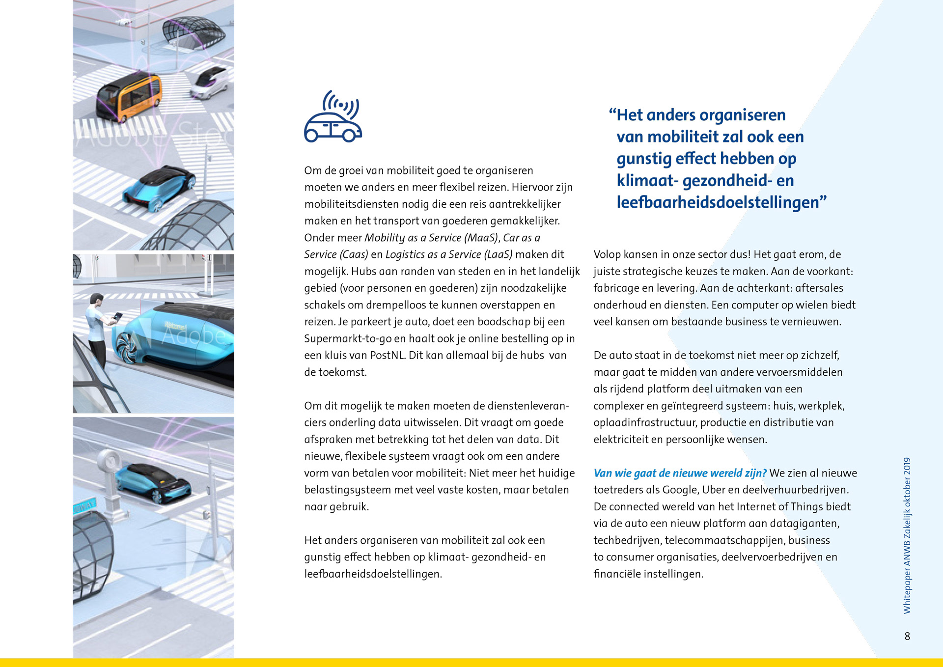 Whitepaper ANWB zakelijk over de toekomst van mobilteit. Deel 1 in een serie van 3 Ontwerp en opmaak. Bureau: FEL